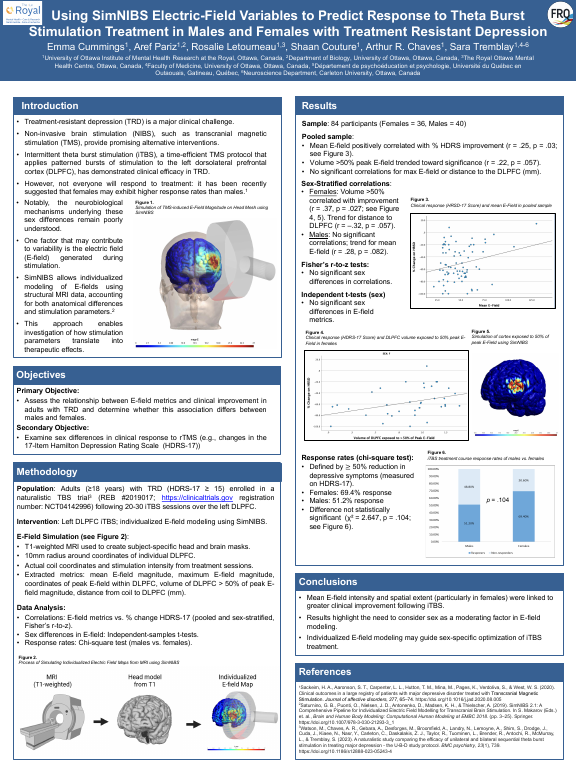 Using SimNIBS Electric-Field Variables to Predict Response to Theta Burst Stimulation Treatment in Males and Females with Treatment Resistant Depression