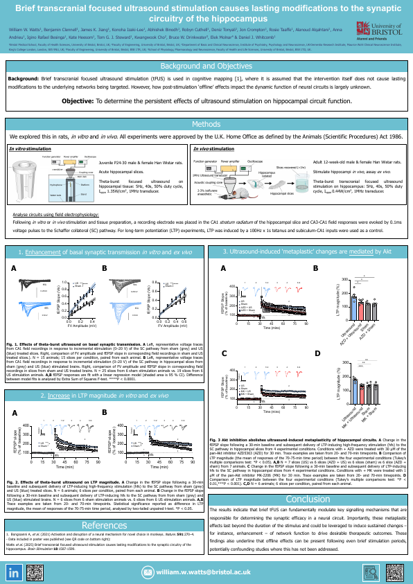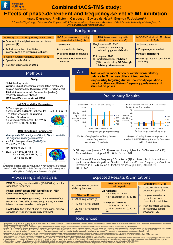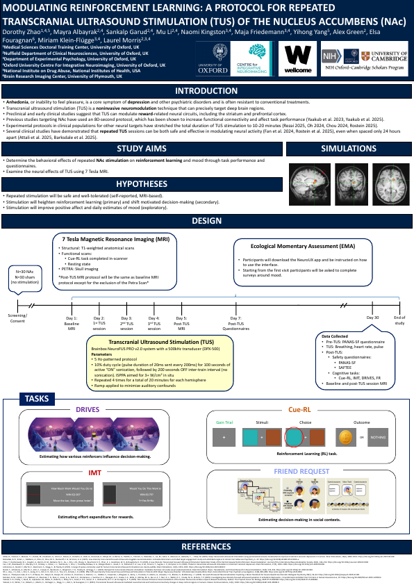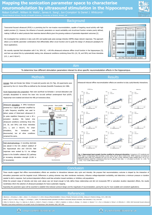 Currently, she is investigating the effects of TUS on the somatosensory cortex of rats, with a particular focus on the variability and reliability of these effects.